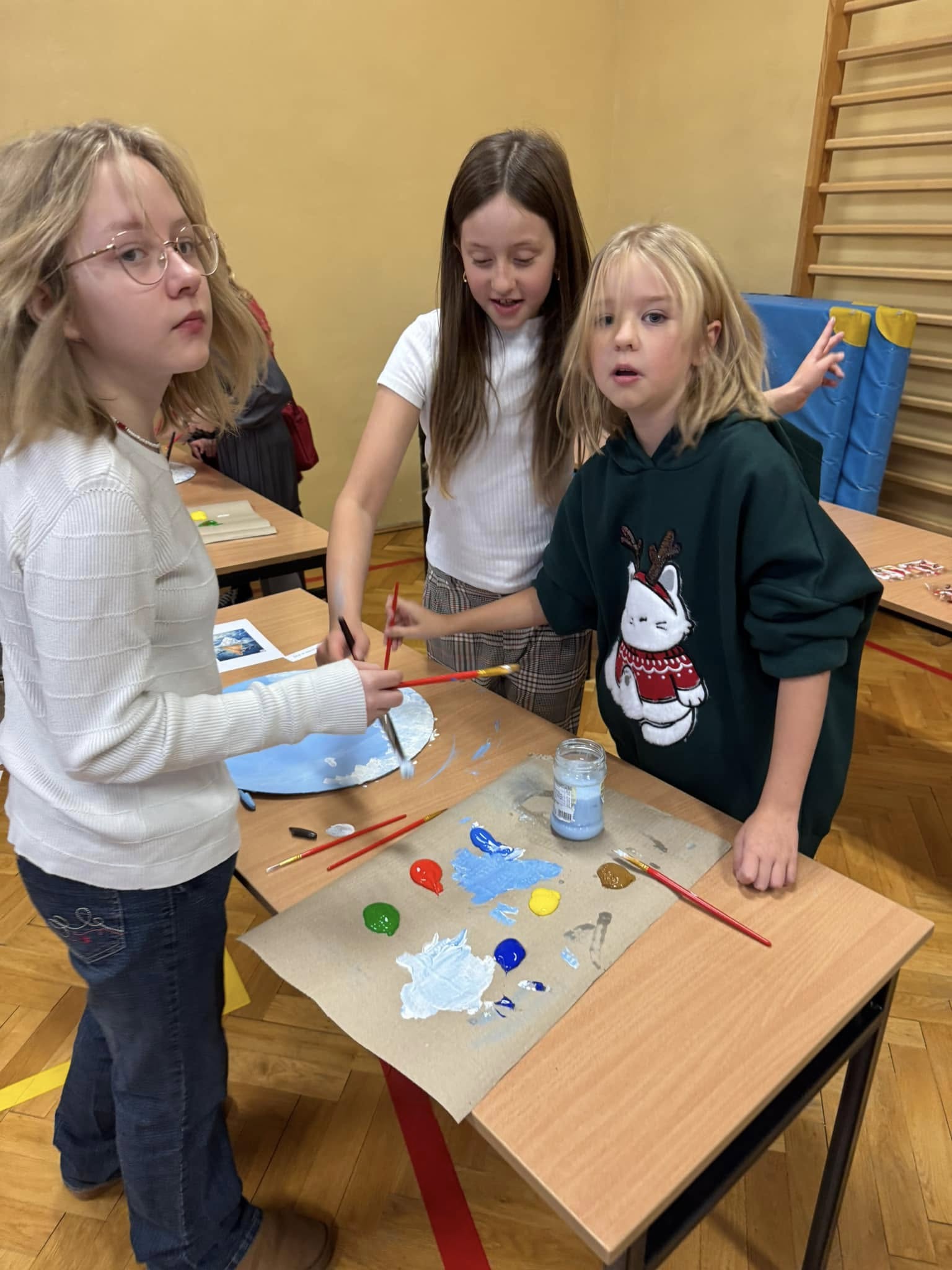 Uczniowie klas 1–8 rywalizowali w kreatywnych i sportowych konkursach – od układania puzzli, przez malowanie obrazów, aż po tworzenie najdłuższego łańcucha na choinkę. Nie zabrakło też kalamburów i emocjonujących konkurencji sportowych.